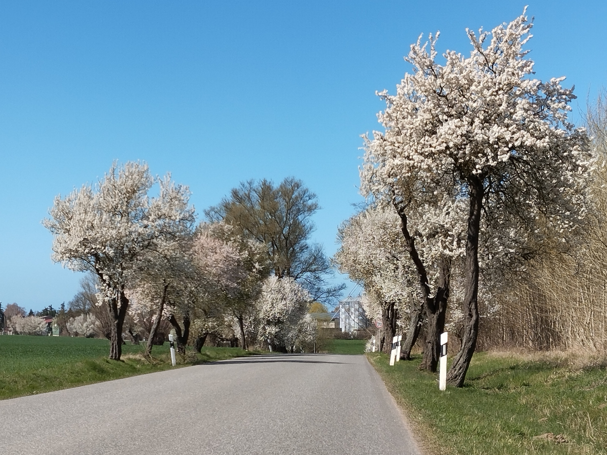 Die Sonne lädt zu einer kleinen Hausrunde ein. Die wilden Pflaumen blühen auch hier an der kühlen Ostseeküste. Es ist einfach herrlich so zwanglos durch die Gegend zu radeln. Neues entdecken die Gärtner sind dabei neue Bäume zu pflanzen, damit auch die alten Alleen hier in Mecklenburg erhalten bleiben. Das dabei die Fehler der Vergangenheit wiederholt werden muss man wohl ertragen. (Darüber habe ich in einem anderen Blog berichtet)